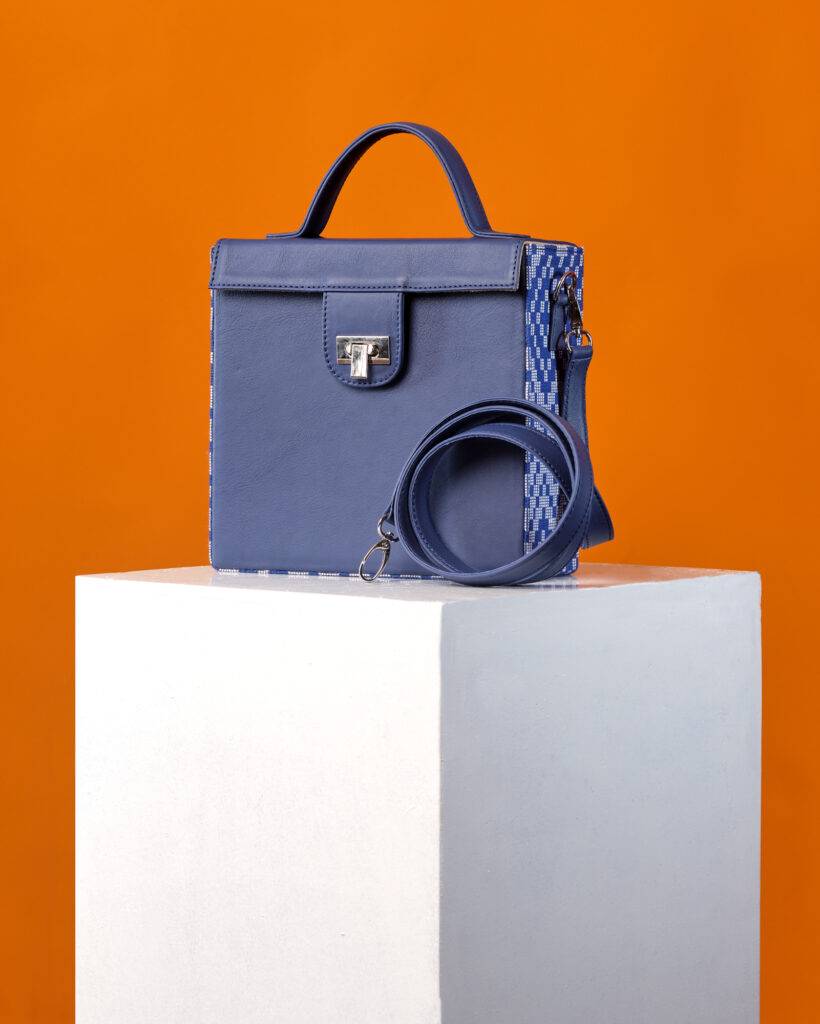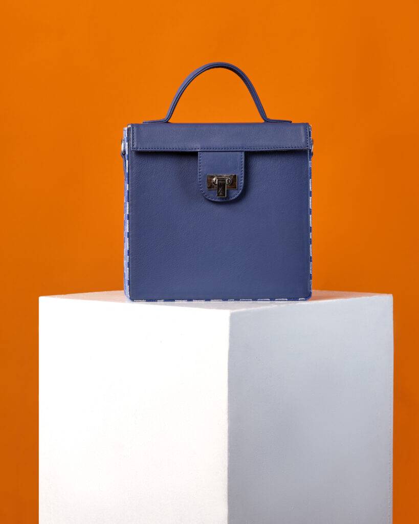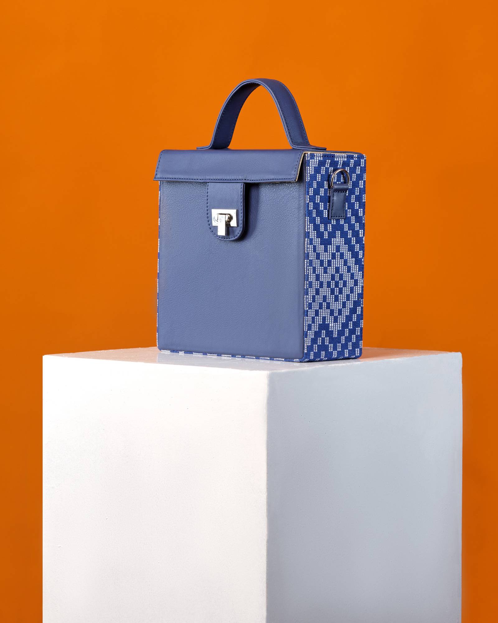 NAWEL HANDBAG BLUE (leather and woven loincloth)
